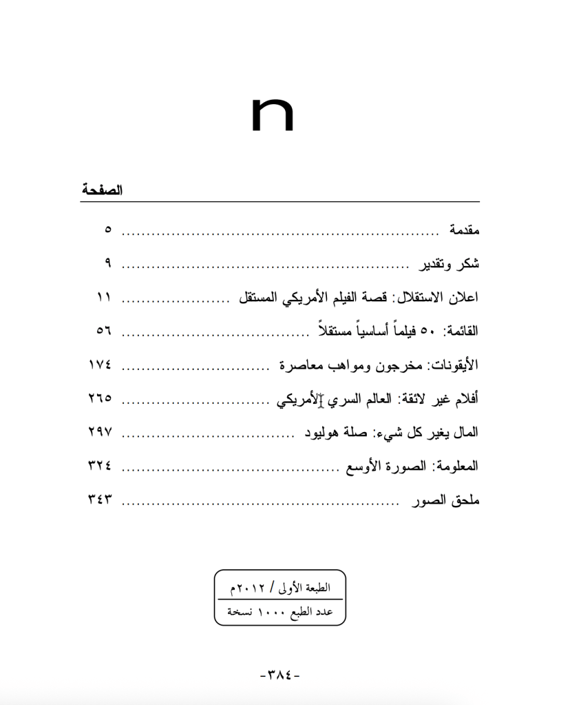 يُعد كتاب هذا الكتاب دليلاً شاملاً يستعرض تاريخ السينما الأمريكية المستقلة وتطورها منذ الستينيات والسبعينيات حتى العصر الحديث. يبدأ الكتاب بمقدمة تحلل مفهوم “الاستقلالية” في الإنتاج السينمائي، مع التركيز على التحديات التمويلية والفنية، ويضم قائمة بـ٥٠ فيلماً أساسياً مستقلًا، مثل أعمال بول توماس اندرسون وديفيد لينش وكوينتن تارانتينو. كما يغطي أقساماً حول المخرجين والمواهب المعاصرة، والأفلام السرية غير اللائقة، وعلاقة هوليوود بالسينما المستقلة، بالإضافة إلى معلومات عامة وملحق صور. يركز الكتاب على كيفية تأثير الميزانيات المنخفضة في الجمالية الفنية، ويبرز الأفلام التي تم إنتاجها خارج نظام الاستوديوهات الرئيسية، مما يجعله مرجعاً قيماً لعشاق السينما المستقلة.
