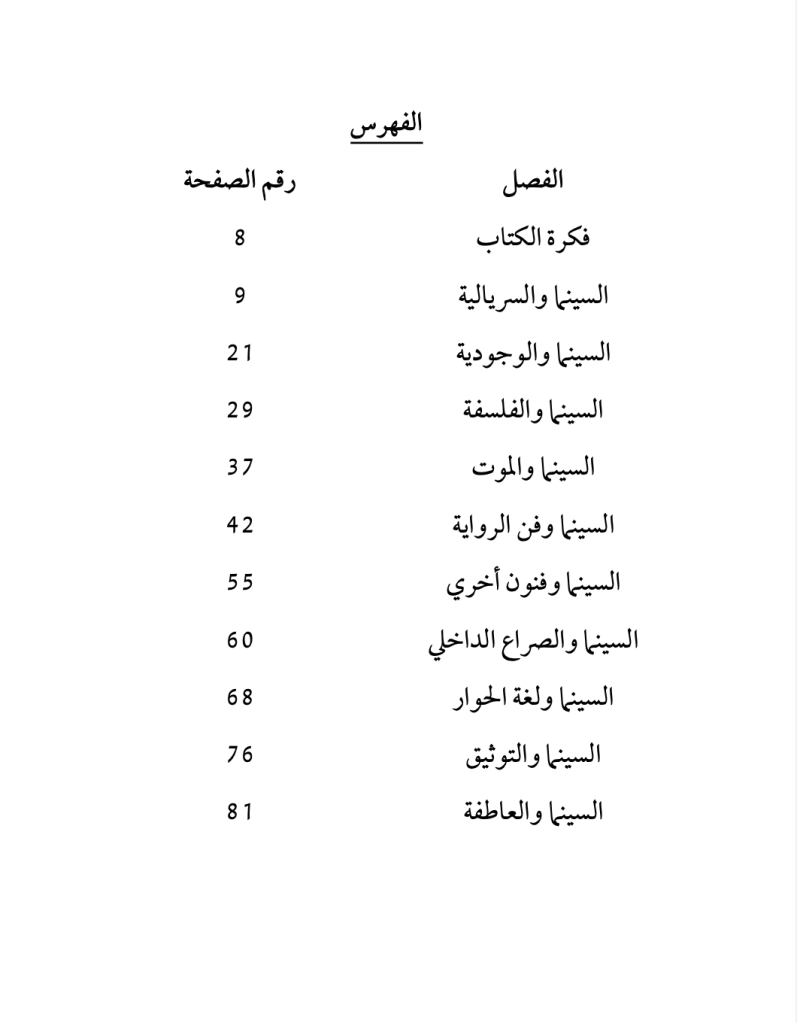 كما يعتمد علي الخواطر، والتأملات الفنية، والتي من شأنها أن تناقش الكثير من الأفكار المتعلقة بالسينما بشكل موسع، وانسيابي ليناسب هذا العمل الفكري المتخصص، وغير المتخصص في نفس الوقت.