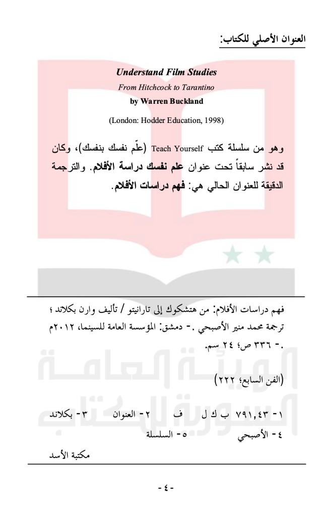 الفصل الخامس: الفيلم غير الروائي، فصل مهمّ، أيضًا يبيّن فيه مؤلف الكتاب ماهية الأنواع الخمسة للفيلم الوثائقي.